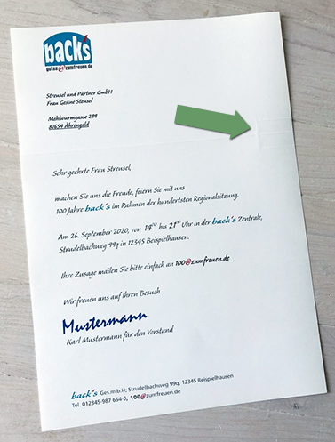 Dann wird der Brief entlang der Rillung und Perforation gefaltet und ...